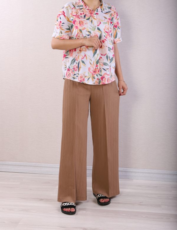 پشت کمر شلوار کشدار است و بدون نگرانی از سایز خود می توانید از آن لذت ببرید.